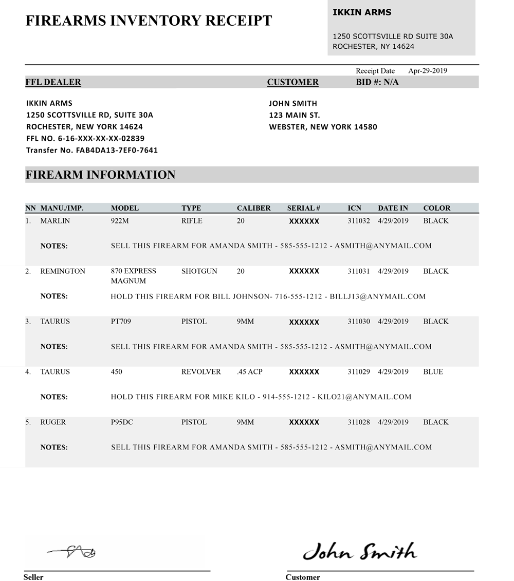 firearms we receive. He will need to file this receipt with